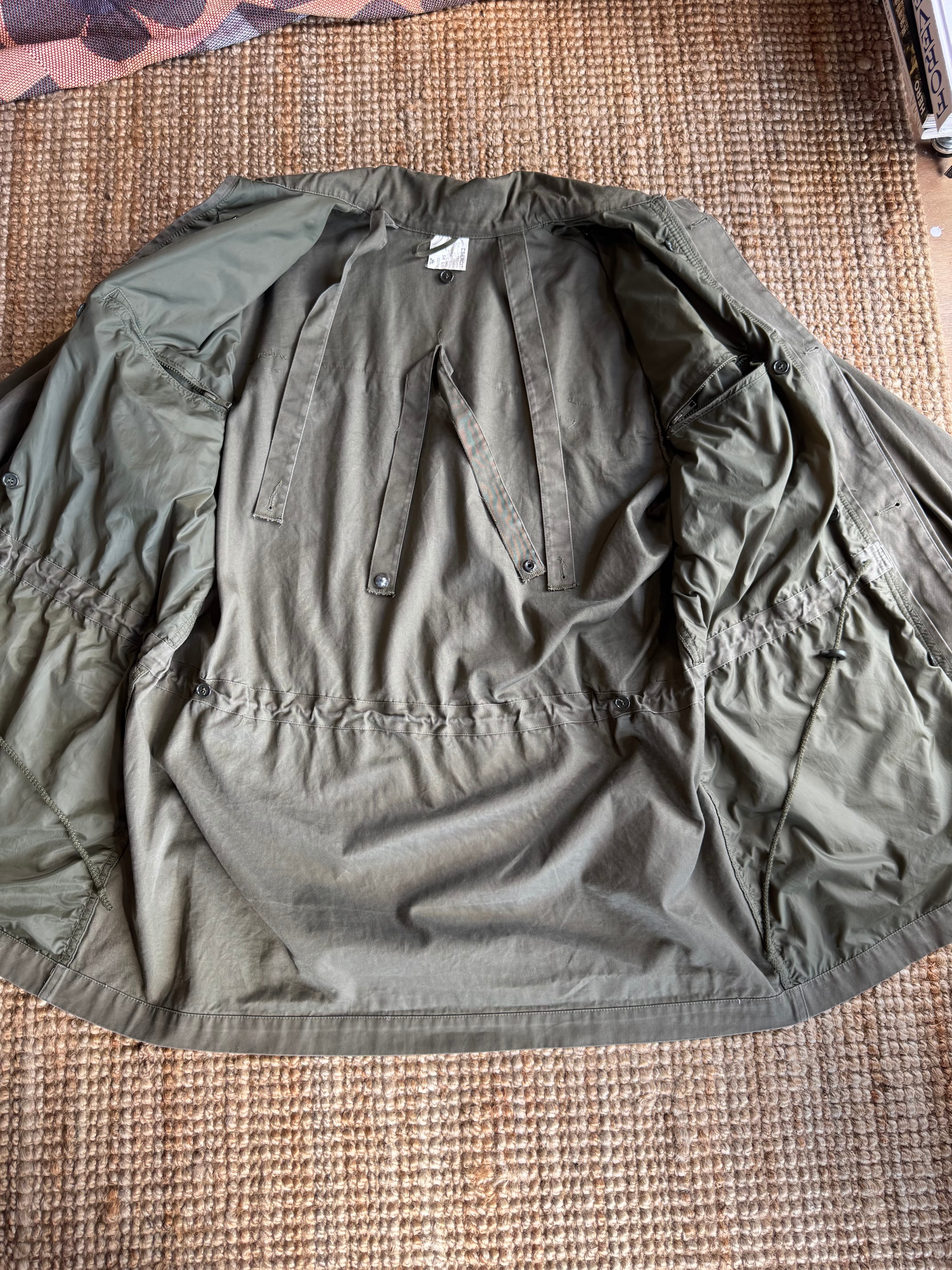 ▶︎年代不明:イタリアの軍服(フィールドジャケット)となります。ウエスト絞りの調整ができ、シルエットのアレンジが楽しめます。
