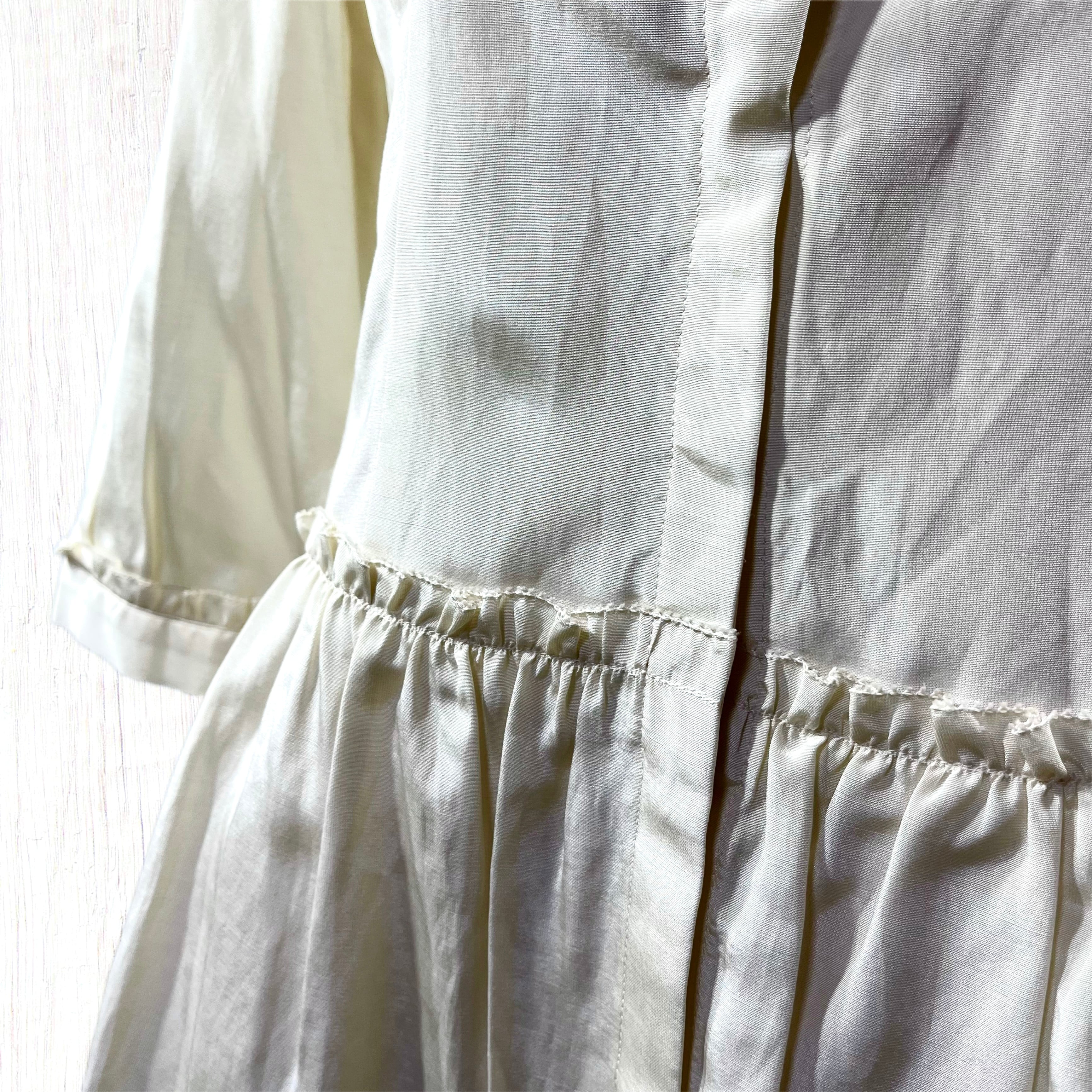 シルク使用でオールシーズン活躍します。夏の羽織物にも肌触りが良くオススメです。ヴィンテージ風な仕上がりが特徴。綺麗なシルエットでフォーマルシーンにも◎