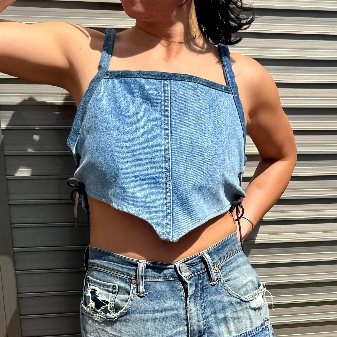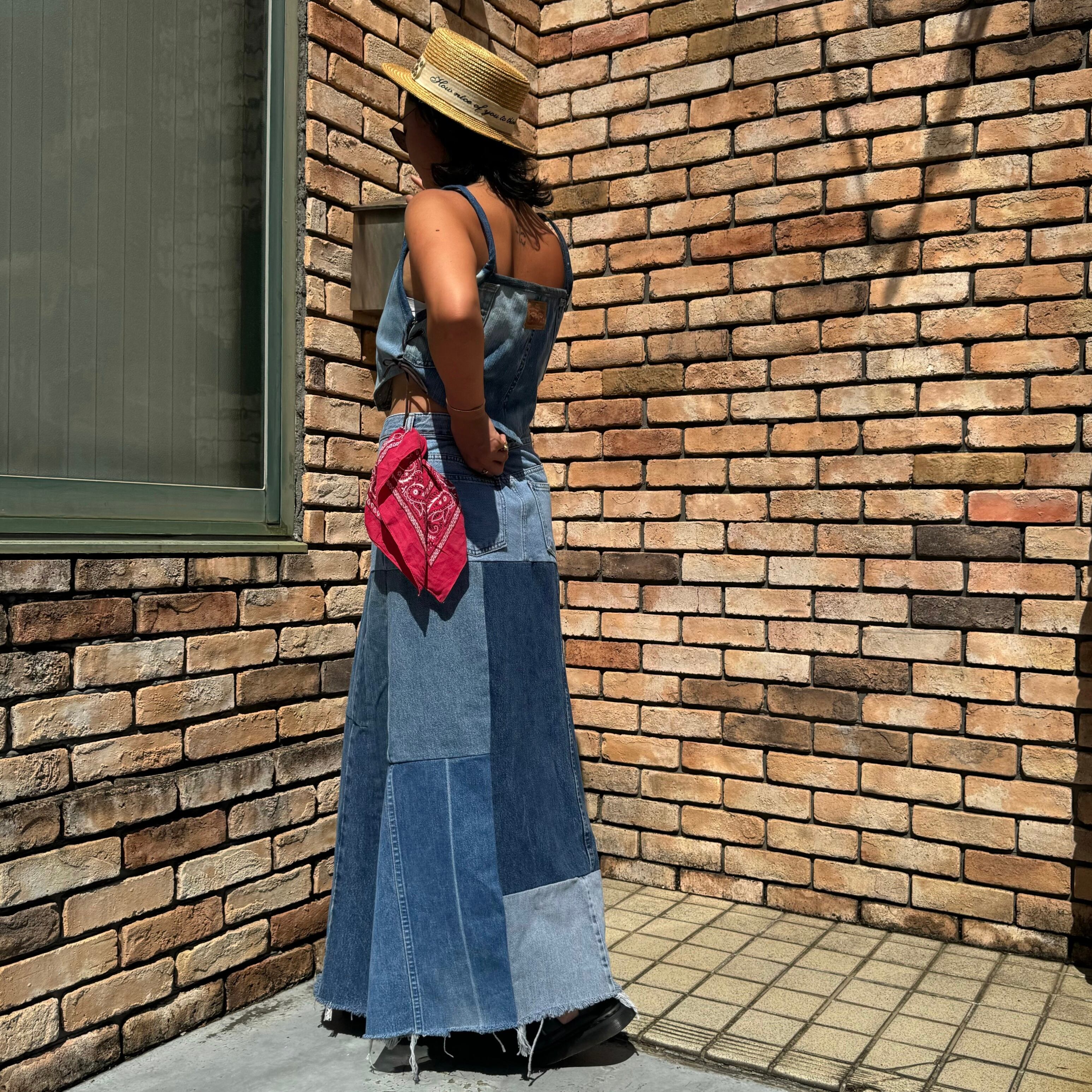 【REMAKE】Denim Set Up/Levi’s Side Lace Up Tops×Long Skirt