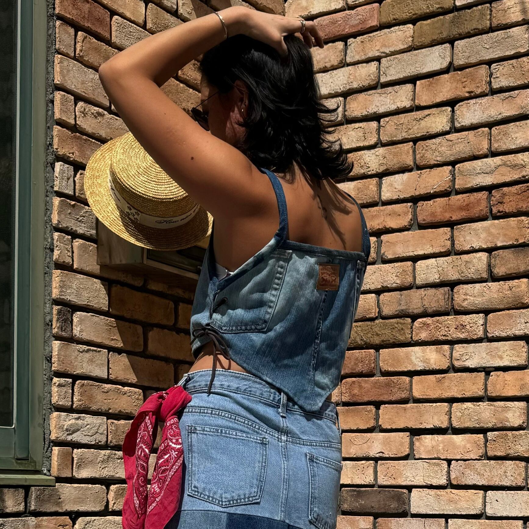 ウエストが緩い場合はバンダナをベルトループに通し調整できるアレンジもオススメです。